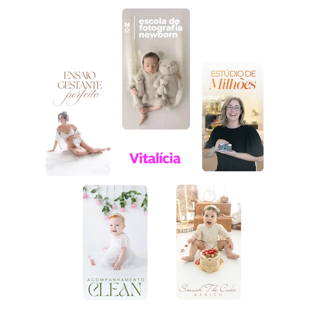 O Acompanhamento Clean é para você que já travou diante do bebê, repetiu as mesmas ideias e terminou a sessão sentindo que faltou algo. Aqui, você aprende a criar poses naturais com segurança enquanto conduz bebês e famílias com leveza; monta cenários minimalistas e únicos, com cores que encantam e ideias novas a cada mês, e domina a iluminação para entregar fotos que emocionam e destacam seu trabalho. Vendo bebês de 1 a 12 meses, você entende o que fazer em cada etapa, fotografando com confiança e se destacando da concorrência.